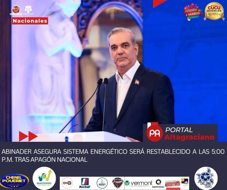 El presidente de la República, Luis Abinader, informó que todo el sistema energético del país será restablecido a las 5:00 de la tarde, luego del…