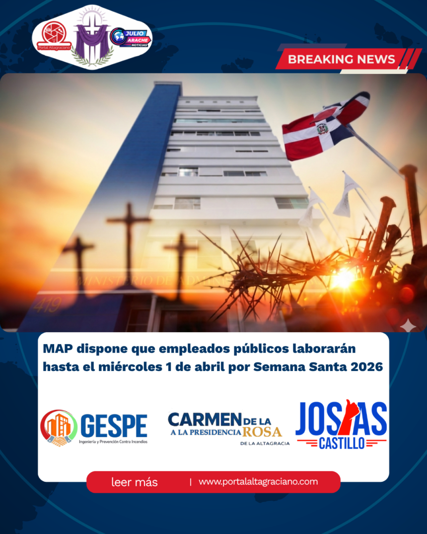 Santo Domingo.– El Ministerio de Administración Pública (MAP) informó que los empleados del sector público laborarán durante la Semana Santa de 2026 hasta el miércoles…