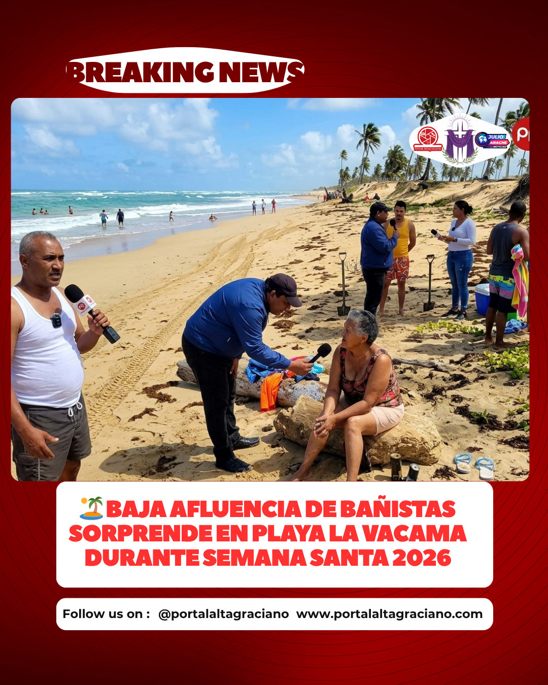 La Vacama, La Altagracia.– En contraste con otros puntos turísticos del país, la playa de La Vacama presenta una inusual baja afluencia de visitantes durante el asueto de Semana Santa 2026, según un reportaje realizado por nuestro corresponsal Hermes Salvador.