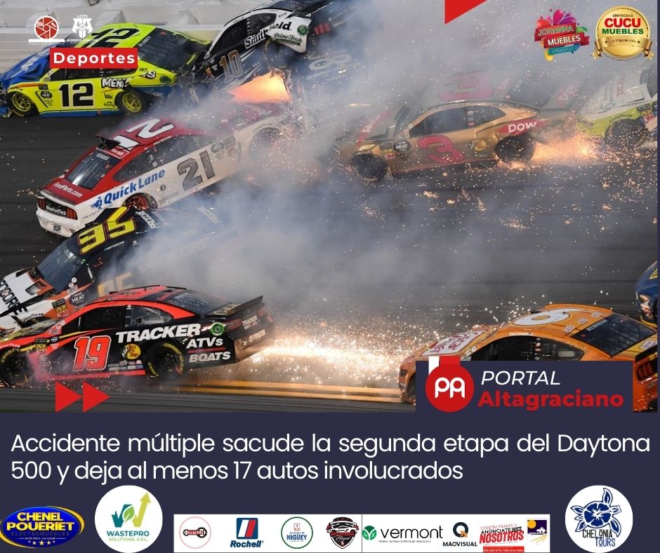 Un accidente múltiple estremeció la segunda etapa del Daytona 500, la carrera más importante del calendario de la NASCAR, cuando al menos 17 autos quedaron involucrados en el primer “Big One” de la jornada.