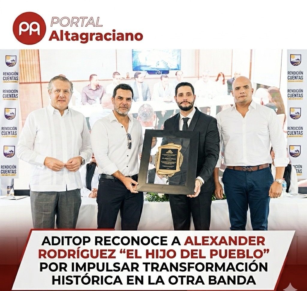 ADITOP reconoce a Alexander Rodríguez “El Hijo del Pueblo” por impulsar transformación histórica en La Otra Banda