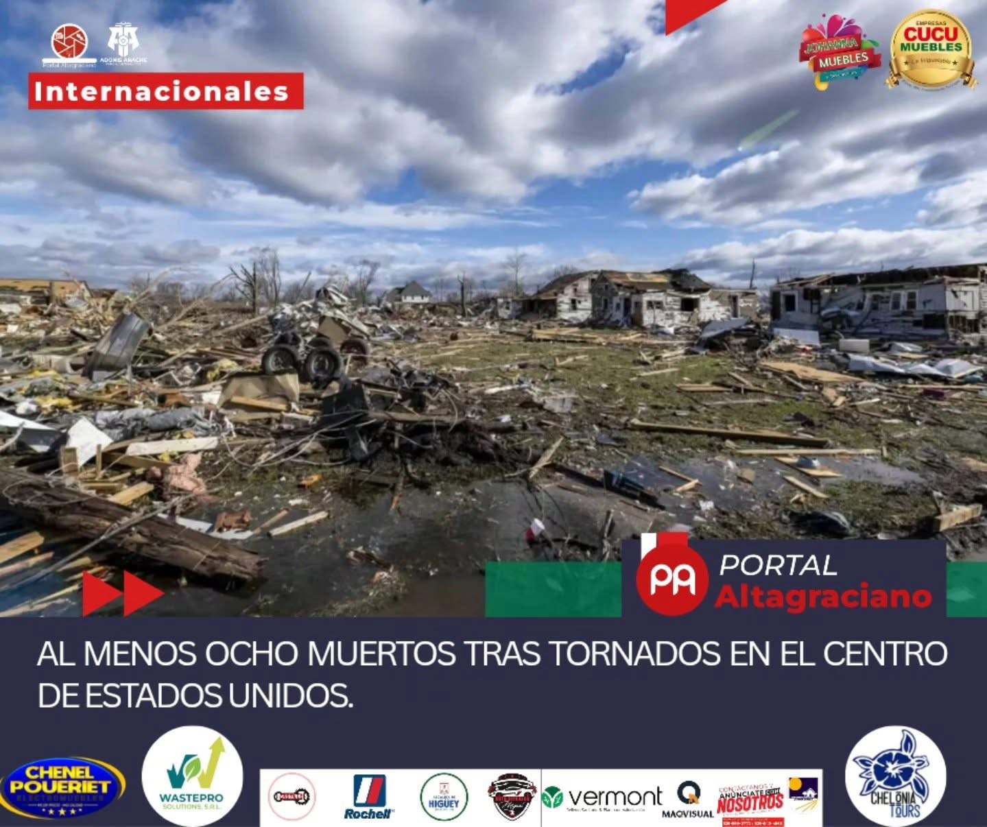 Al menos ocho personas murieron y una decena resultaron heridas tras una serie de tornados que azotaron el centro de Estados Unidos, como parte de un sistema de fuertes tormentas que continúa activo este sábado, informaron las autoridades.