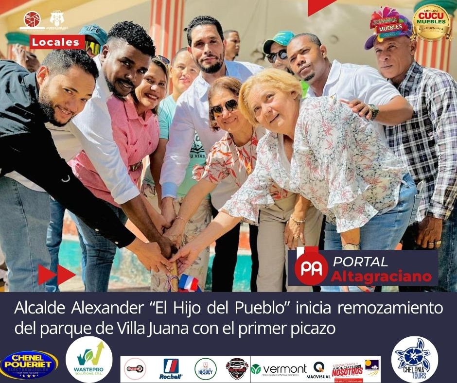 La Otra Banda, La Altagracia.– El alcalde distrital Alexander Rodríguez, conocido como “El Hijo del Pueblo”, dejó formalmente iniciados los trabajos de remozamiento y reconstrucción del parque del sector Villa Juana, con la realización del simbólico primer picazo, en un acto que contó con la presencia de autoridades municipales, líderes comunitarios y representantes de la prensa.