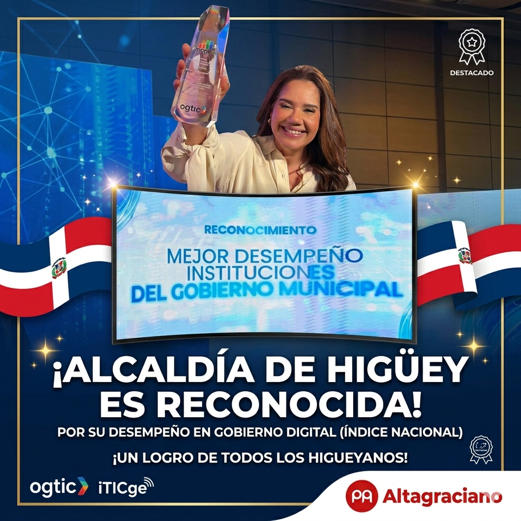 El reconocimiento posiciona a Higüey entre las administraciones locales que están liderando procesos de transformación digital en el país, fortaleciendo los servicios públicos y la interacción con la ciudadanía.