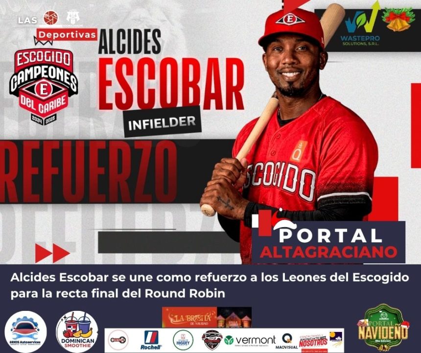 Los Leones del Escogido, campeones nacionales y del Caribe, anunciaron la incorporación del experimentado infielder venezolano Alcides Escobar como nuevo refuerzo del equipo, según informó el gerente general Carlos Peña, de cara a la etapa decisiva del torneo.