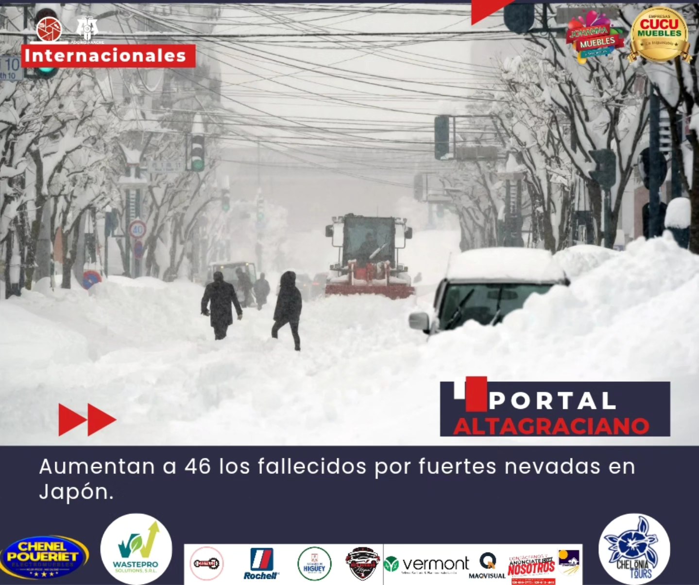 El número de víctimas mortales a causa de las intensas nevadas registradas en Japón aumentó este martes a 46 personas, mientras que más de 500 resultaron heridas, de acuerdo con los más recientes datos ofrecidos por la Agencia de Gestión de Desastres e Incendios de ese país.