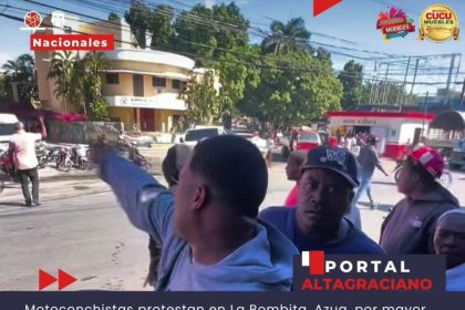 Motoconchistas protestan en La Bombita, Azua, por mayor seguridad vial.