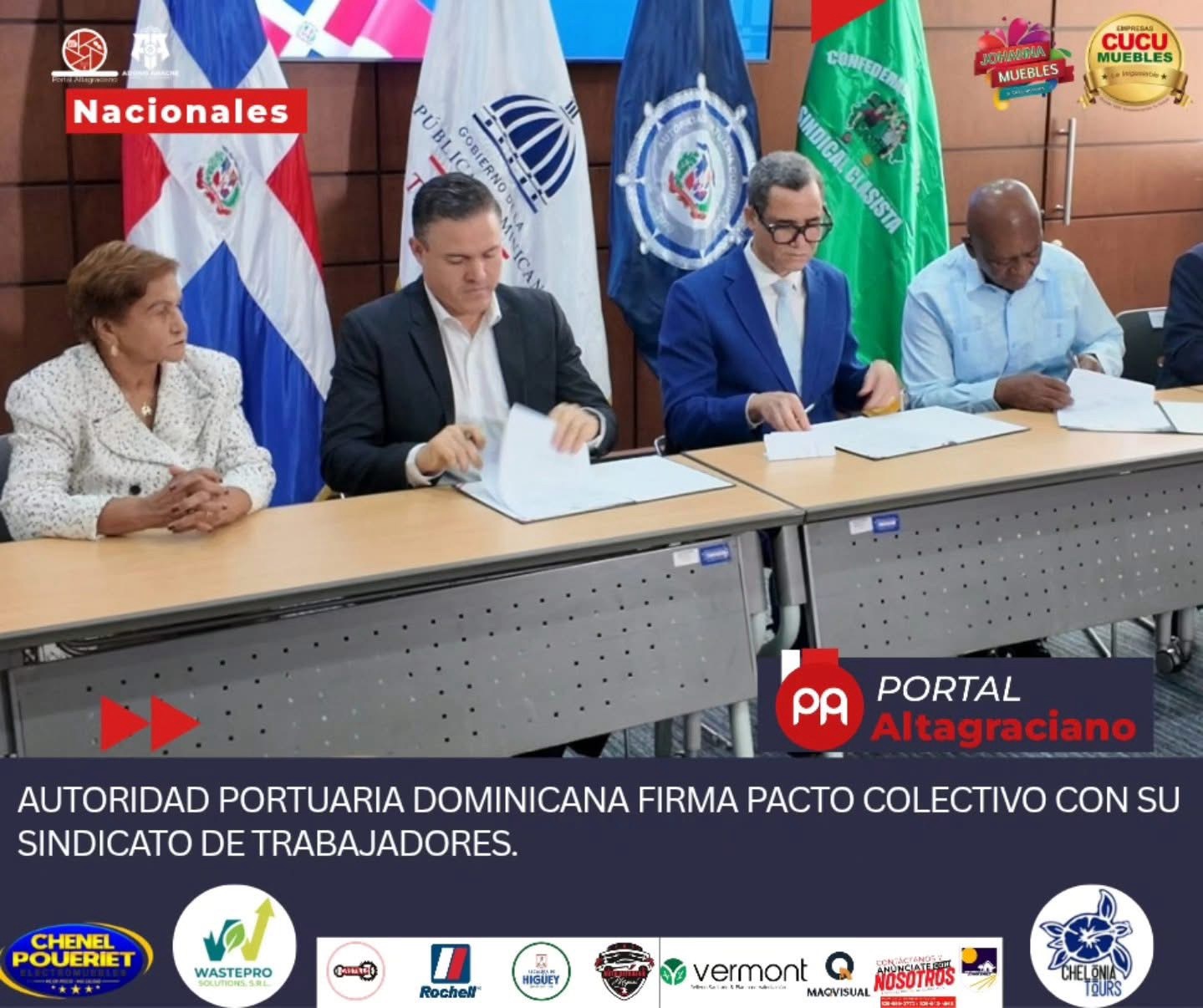 La Autoridad Portuaria Dominicana firmó un pacto colectivo con su sindicato de trabajadores, en un acuerdo que autoridades y representantes laborales calificaron como histórico.
