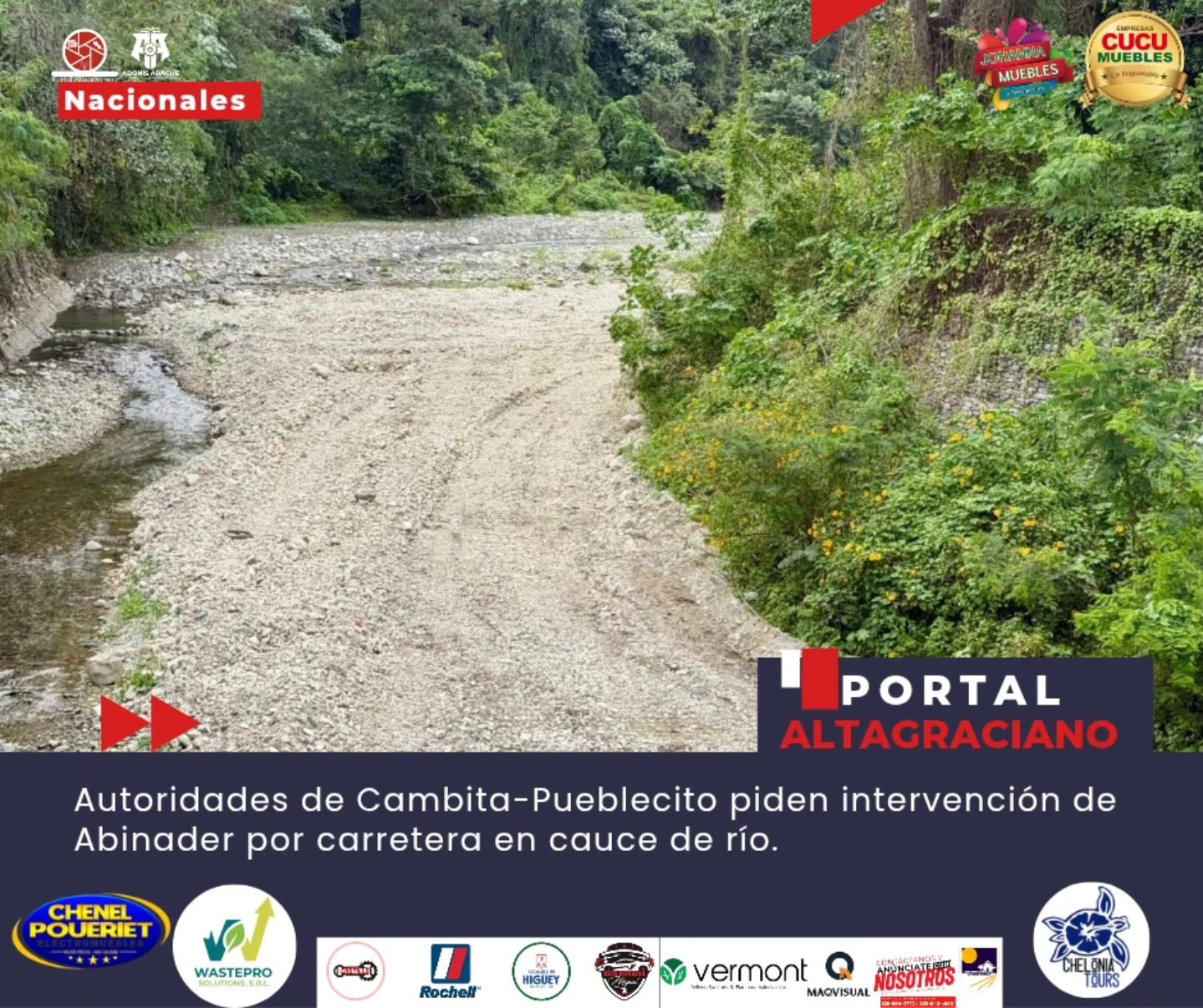 El alcalde del distrito municipal de Cambita-Pueblecito, Javier Garabitos, junto a dirigentes comunitarios, presidentes de juntas de vecinos y autoridades locales, solicitó la acción directa del presidente Luis Abinader ante la construcción de una carretera dentro del cauce de un río de la zona.