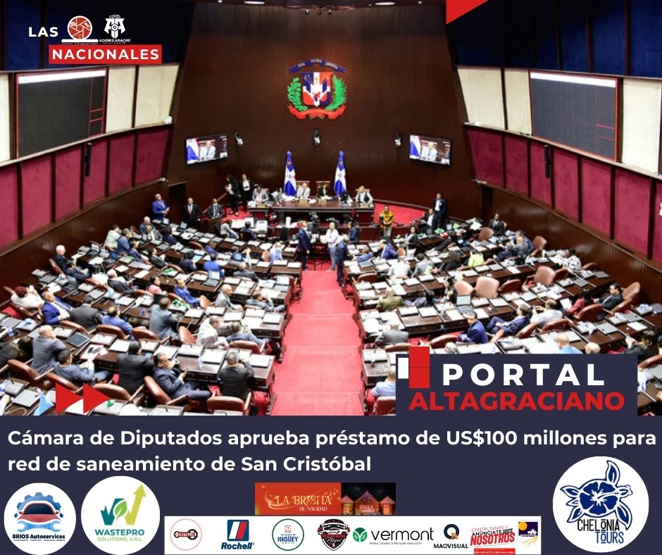 La Cámara de Diputados aprobó en única discusión un contrato de préstamo por 100 millones de dólares, destinado al financiamiento del proyecto de construcción de la red de saneamiento de la provincia San Cristóbal, una obra de gran impacto social y ambiental que será ejecutada por el Instituto Nacional de Aguas Potables y Alcantarillados (INAPA).