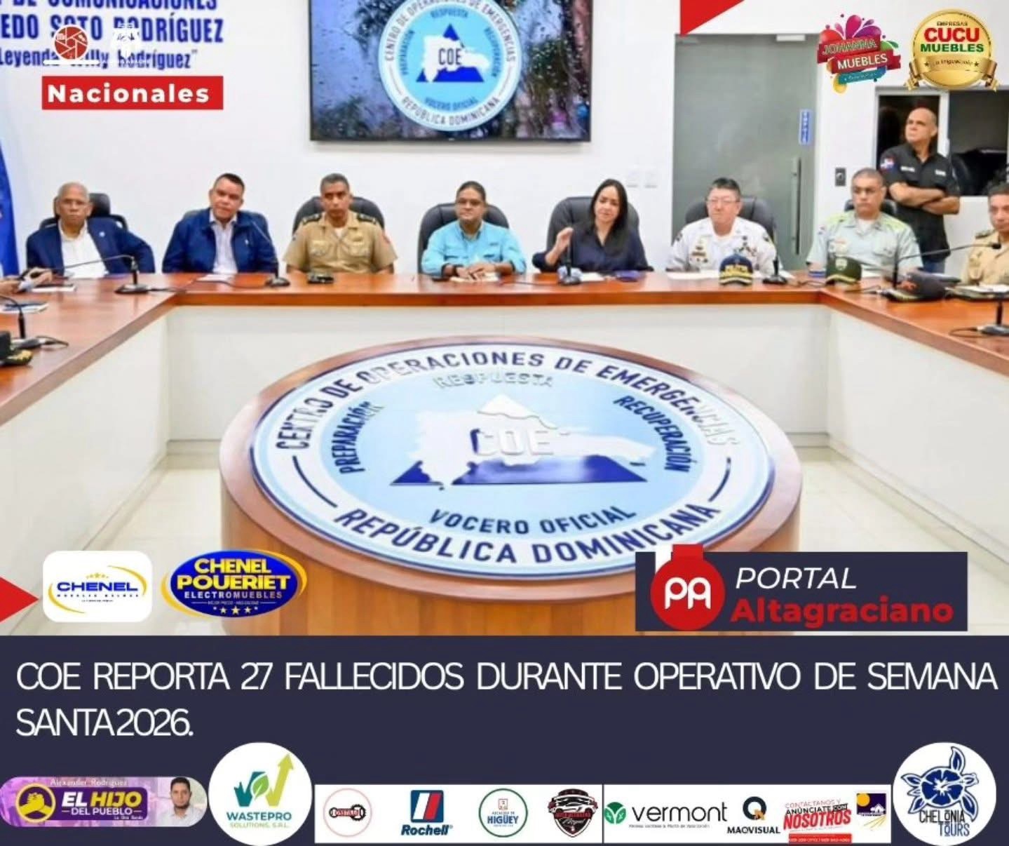 El Centro de Operaciones de Emergencias (COE) informó que un total de 27 personas fallecieron durante el operativo “Conciencia por la Vida 2026”, desarrollado desde el jueves 2 hasta el domingo 5 de abril en la República Dominicana.