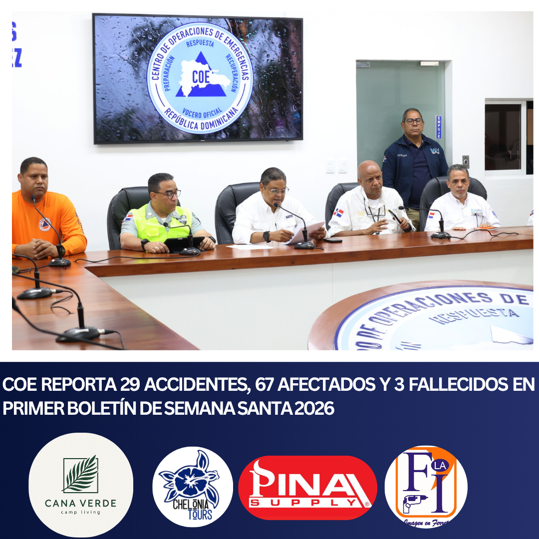 Santo Domingo. – El Centro de Operaciones de Emergencias (COE) informó este viernes, en su primer boletín del operativo “Conciencia por la Vida Semana Santa 2026”, que se han registrado 29 accidentes de tránsito, dejando un saldo de 67 personas afectadas y tres fallecidos.