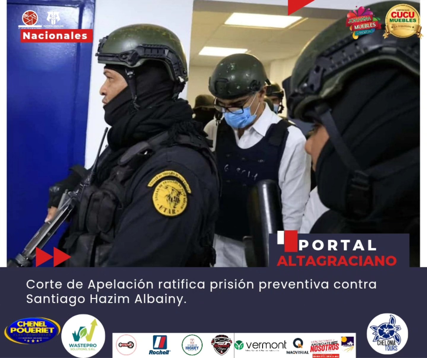 La Corte de Apelación del Distrito Nacional ratificó la prisión preventiva contra Santiago Marcelo Francisco Hazim Albainy, señalado por el Ministerio Público como presunto cabecilla de una red delictiva.