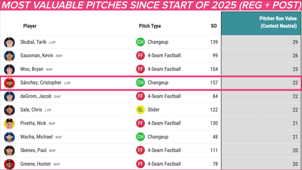 Este estilo lo coloca en un grupo muy reducido de lanzadores, junto a figuras como su compatriota Framber Valdez, quienes han optado por el sinker como su pitcheo base. A pesar de que el uso de la bola rápida ha disminuido en los últimos años, sigue siendo el lanzamiento más utilizado en el béisbol, lo que hace aún más impresionante el caso de Sánchez.