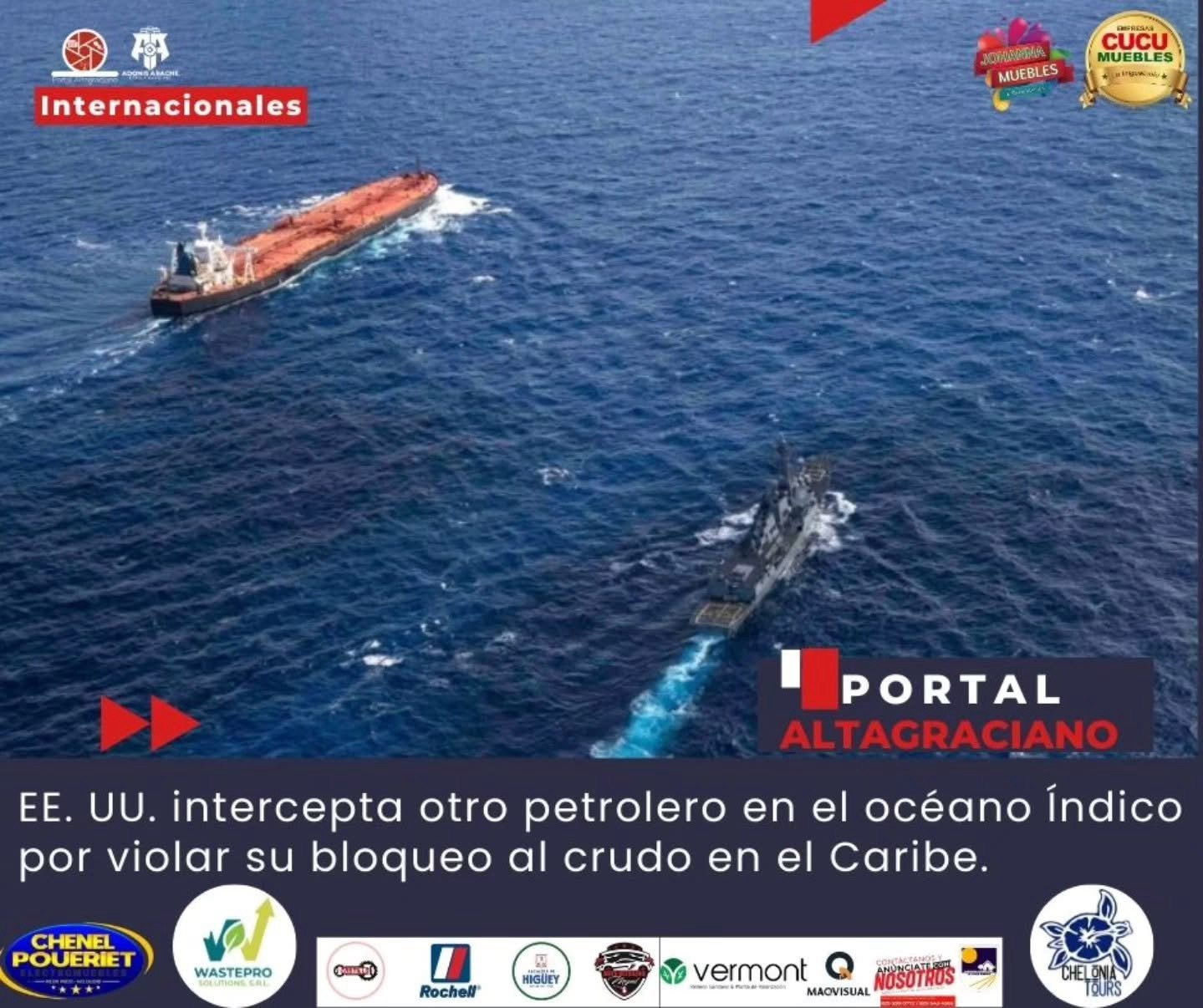 El Departamento de Guerra de Estados Unidos anunció este domingo que interceptó en el océano Índico a otro petrolero, al que acusó de violar el bloqueo impuesto a las operaciones de crudo en el Caribe vinculadas con Venezuela y Cuba, intentando eludir el cerco estadounidense, informó el Pentágono en un mensaje en la red social X acompañado de un video de la operación.