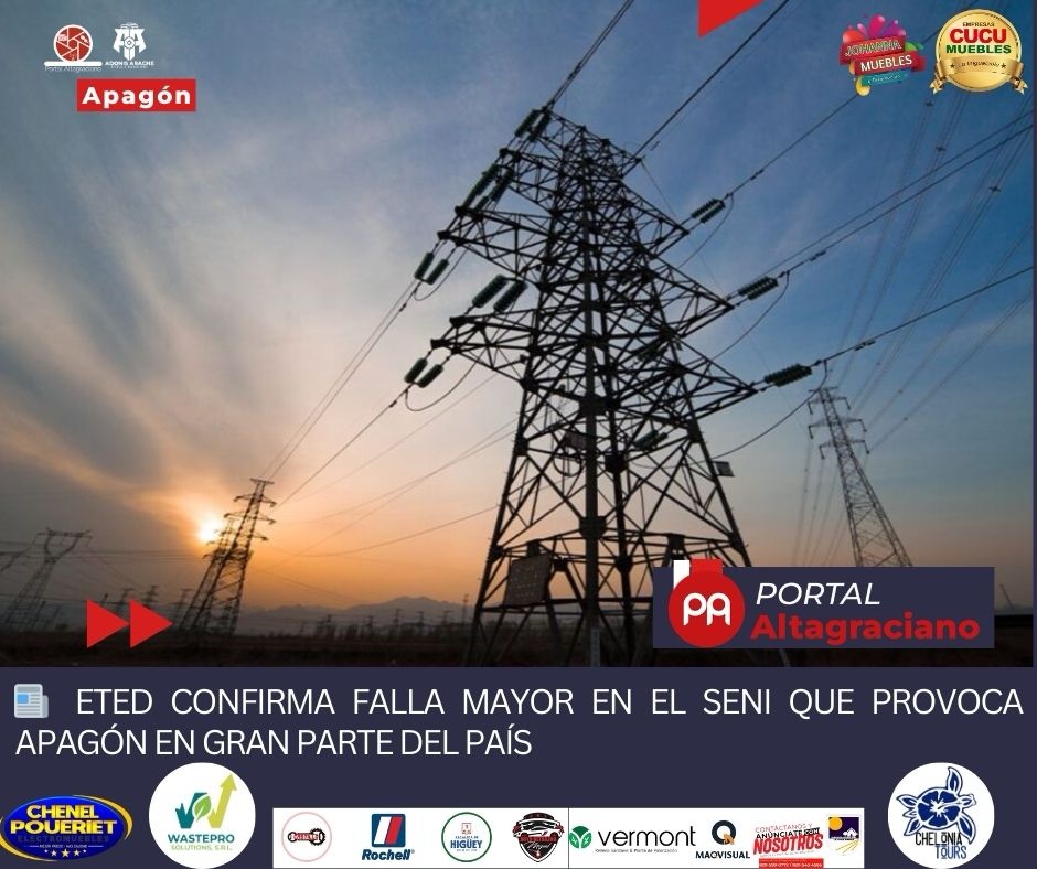 La Empresa de Transmisión Eléctrica Dominicana (ETED) confirmó que una falla mayor en el Sistema Eléctrico Nacional Interconectado (SENI) provocó un apagón que afecta gran parte del territorio nacional.