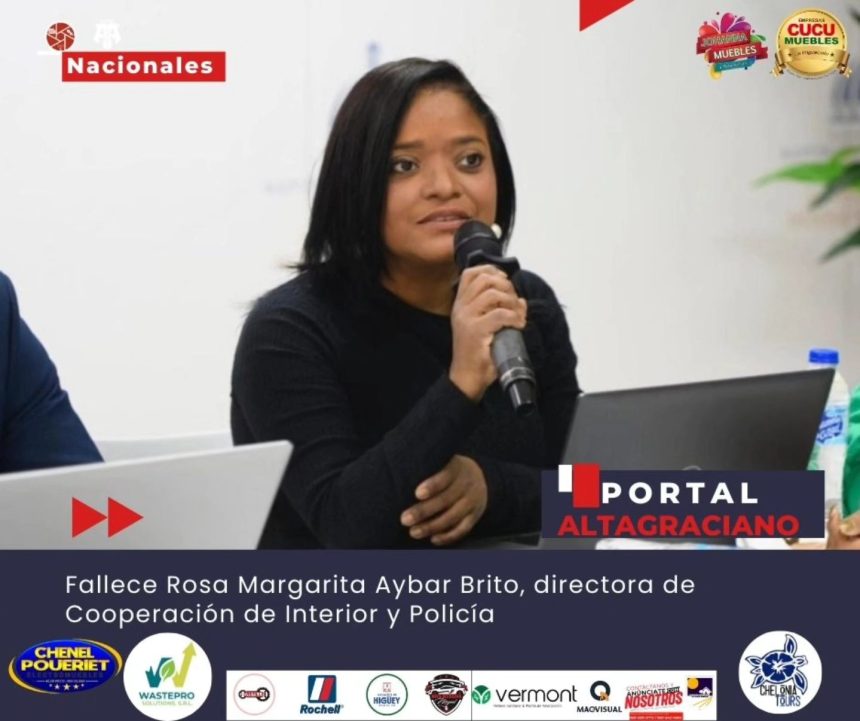 Falleció este lunes Rosa Margarita Aybar Brito, directora de Cooperación del Ministerio de Interior y Policía, según informó la ministra de esa institución, Faride Raful, a través de un mensaje publicado en sus redes sociales oficiales.
