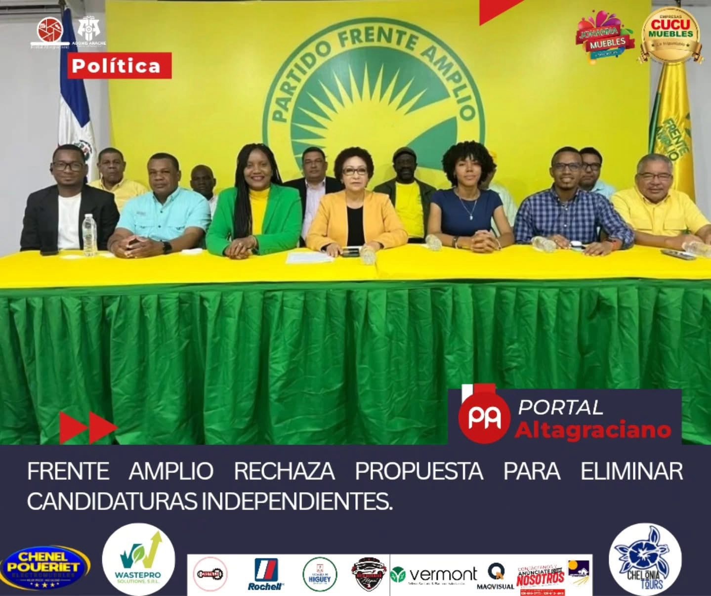 El Frente Amplio calificó como regresiva y antidemocrática la iniciativa legislativa impulsada en el Congreso Nacional que busca derogar los artículos 156, 157 y 158 de la Ley núm. 20-23 de Régimen Electoral.