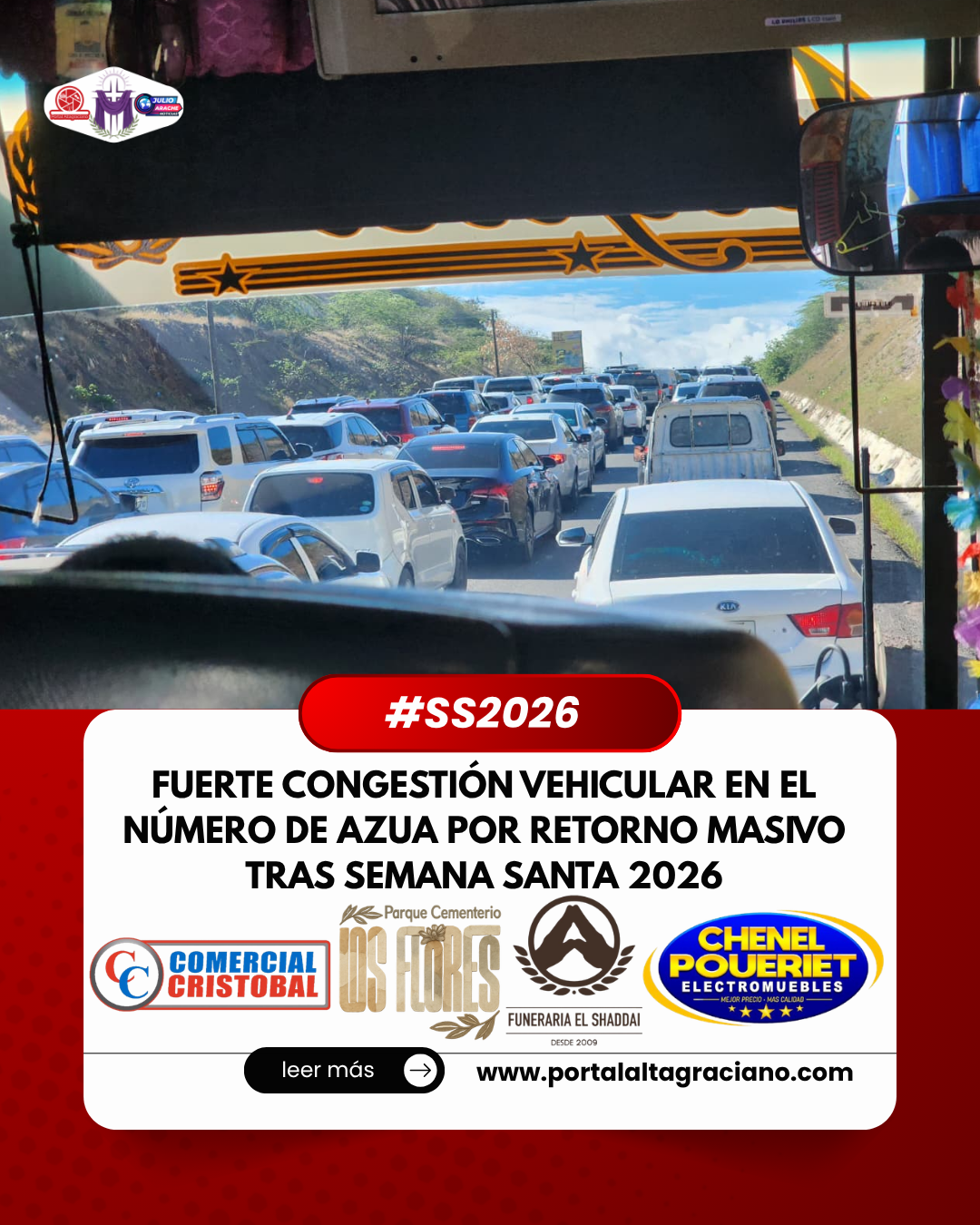 Desde tempranas horas de este domingo se registra una fuerte congestión vehicular en la zona conocida como El Número, en la provincia de Azua, debido al regreso masivo de ciudadanos hacia Santo Domingo tras el asueto de Semana Santa.