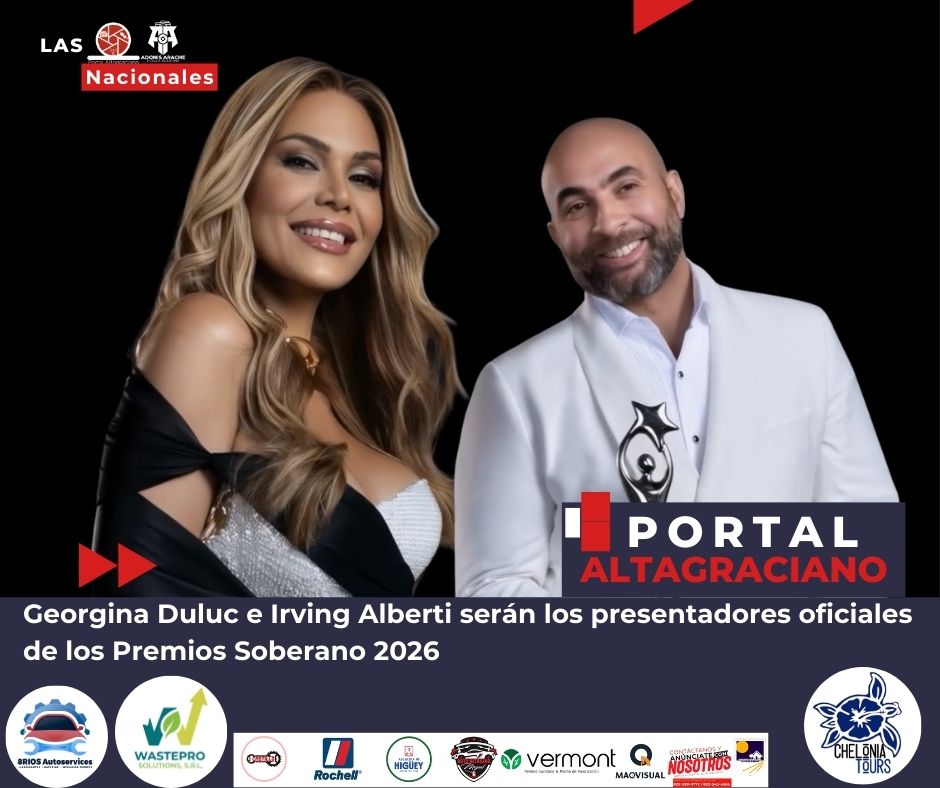 “El reconocido humorista Irving Alberti y la actriz y comunicadora Georgina Duluc serán los presentadores oficiales de los Premios Soberano 2026, los máximos galardones que celebran lo mejor del arte y la cultura de la República Dominicana”, expresa la publicación oficial.