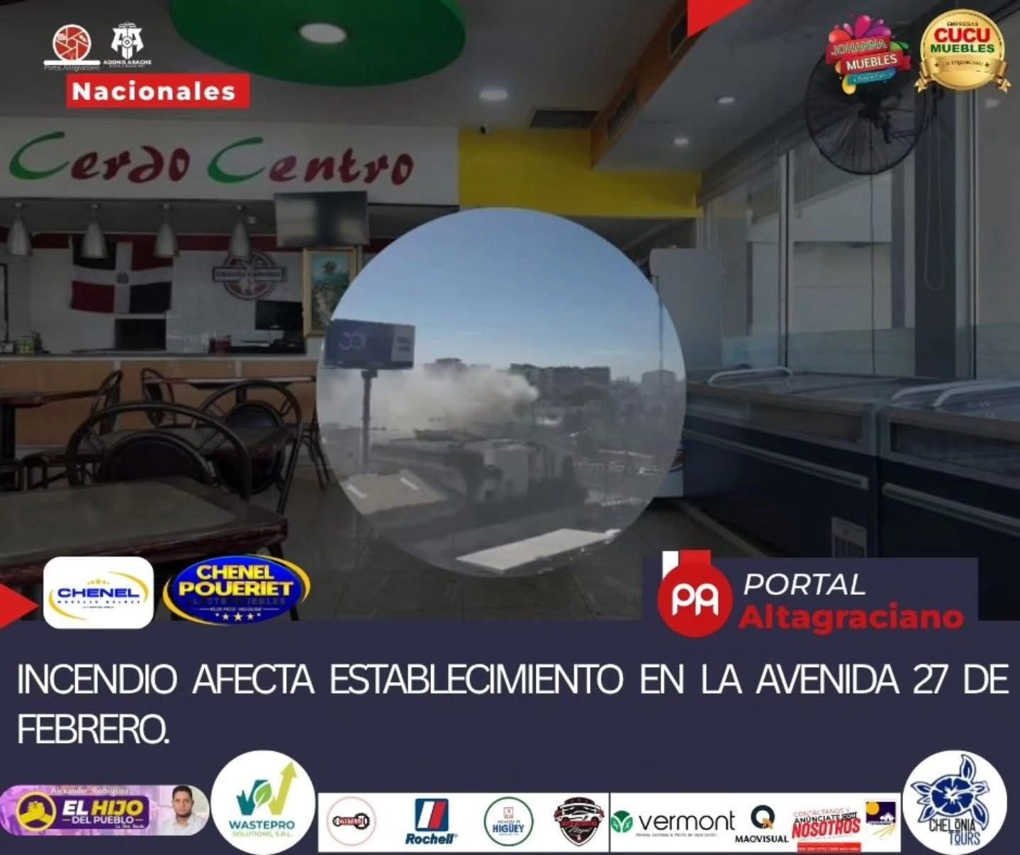 Un incendio se registró la tarde de este lunes en el establecimiento Cerdocentro, ubicado en la avenida 27 de Febrero esquina Privada, en el Distrito Nacional.
