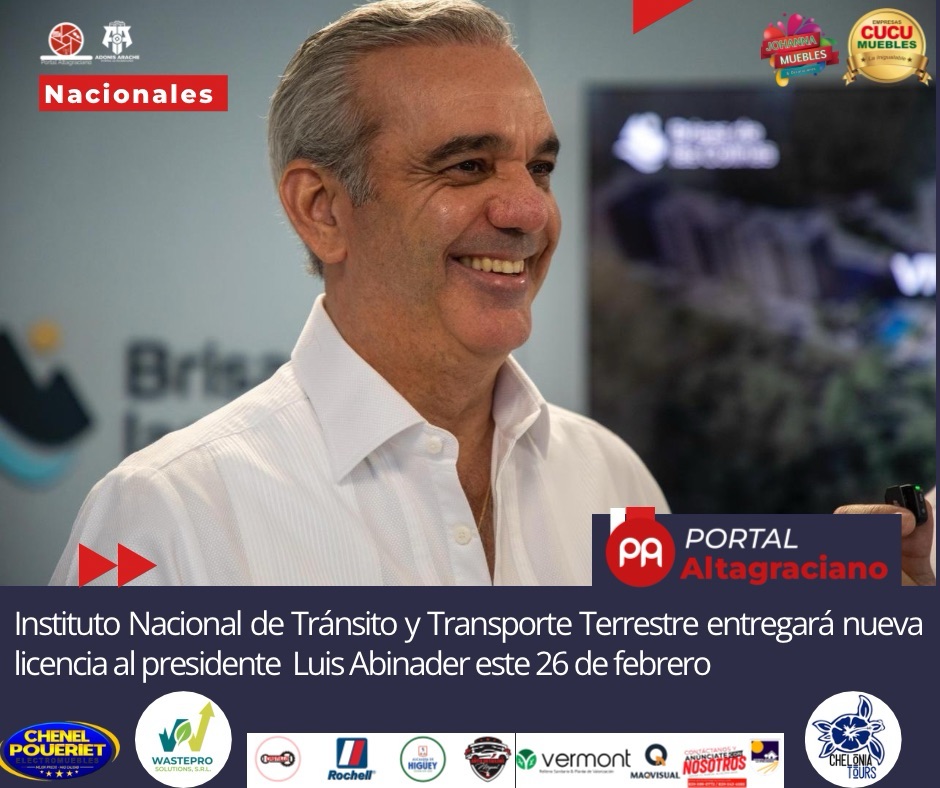 El Instituto Nacional de Tránsito y Transporte Terrestre (Intrant) entregará el jueves 26 de febrero la nueva licencia de conducir al presidente Luis Abinader, en un acto que marcará el inicio oficial del nuevo sistema de emisión del documento en la República Dominicana.