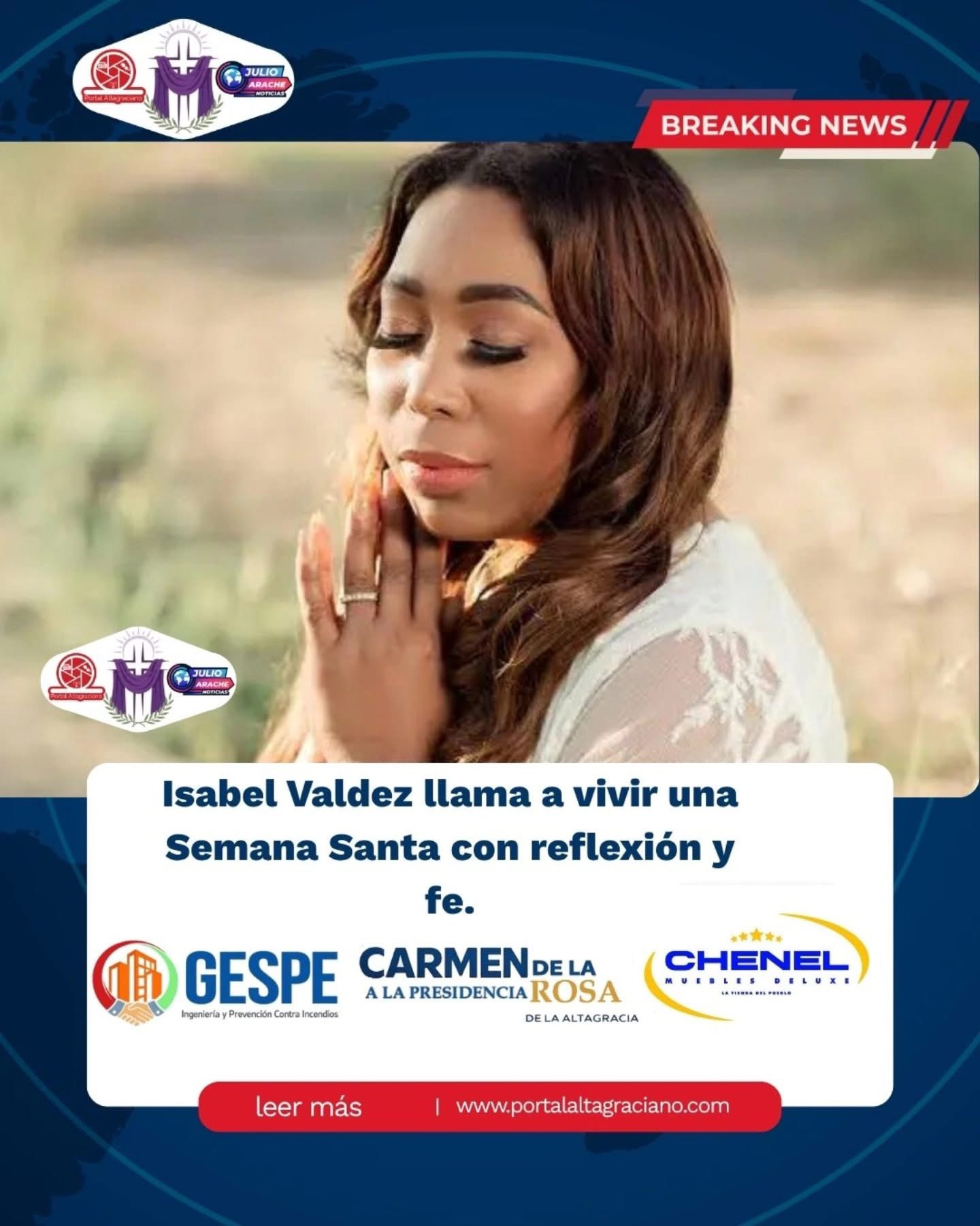 La artista cristiana Isabel Valdez exhortó a la sociedad dominicana y al mundo a vivir el asueto de la Semana Santa con reflexión, cuidado y conexión espiritual.