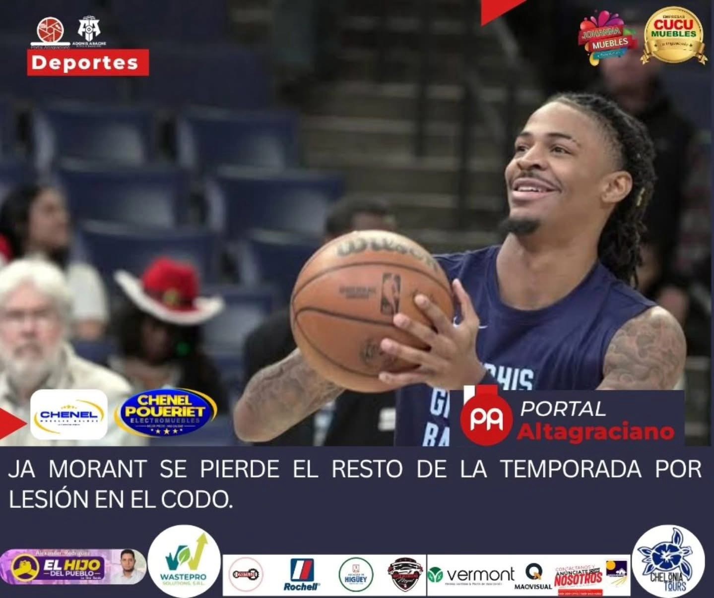 El base de los Memphis Grizzlies, Ja Morant, se perderá el resto de la temporada debido a un esguince del ligamento colateral cubital (UCL) en el codo izquierdo, según informó el equipo.