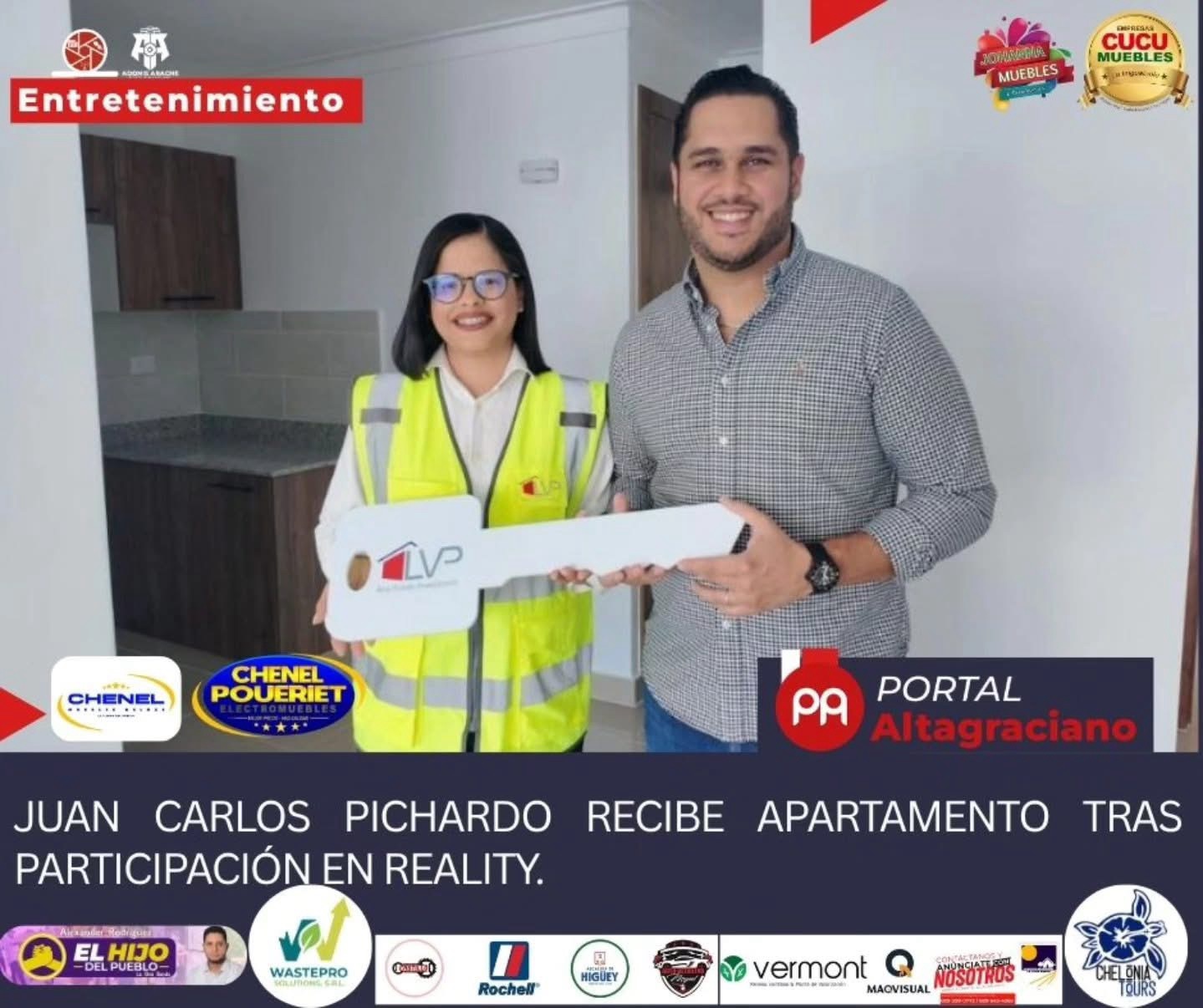 El humorista y comunicador Juan Carlos Pichardo recibió este lunes el apartamento que ganó tras obtener el quinto lugar en el reality show La Casa de Alofoke 2.
