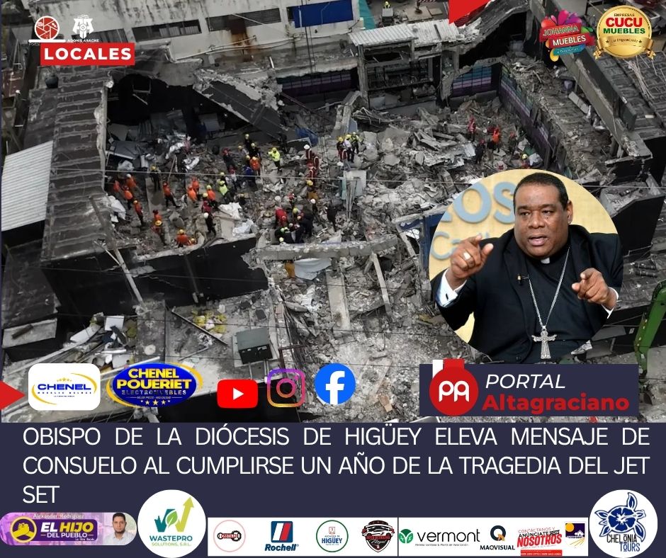 Higüey, La Altagracia.– El obispo de la Diócesis de Higüey compartió un mensaje cargado de fe, consuelo y solidaridad al cumplirse un año del trágico accidente ocurrido en el centro de diversiones Jet Set, hecho que dejó profundas heridas en numerosas familias.