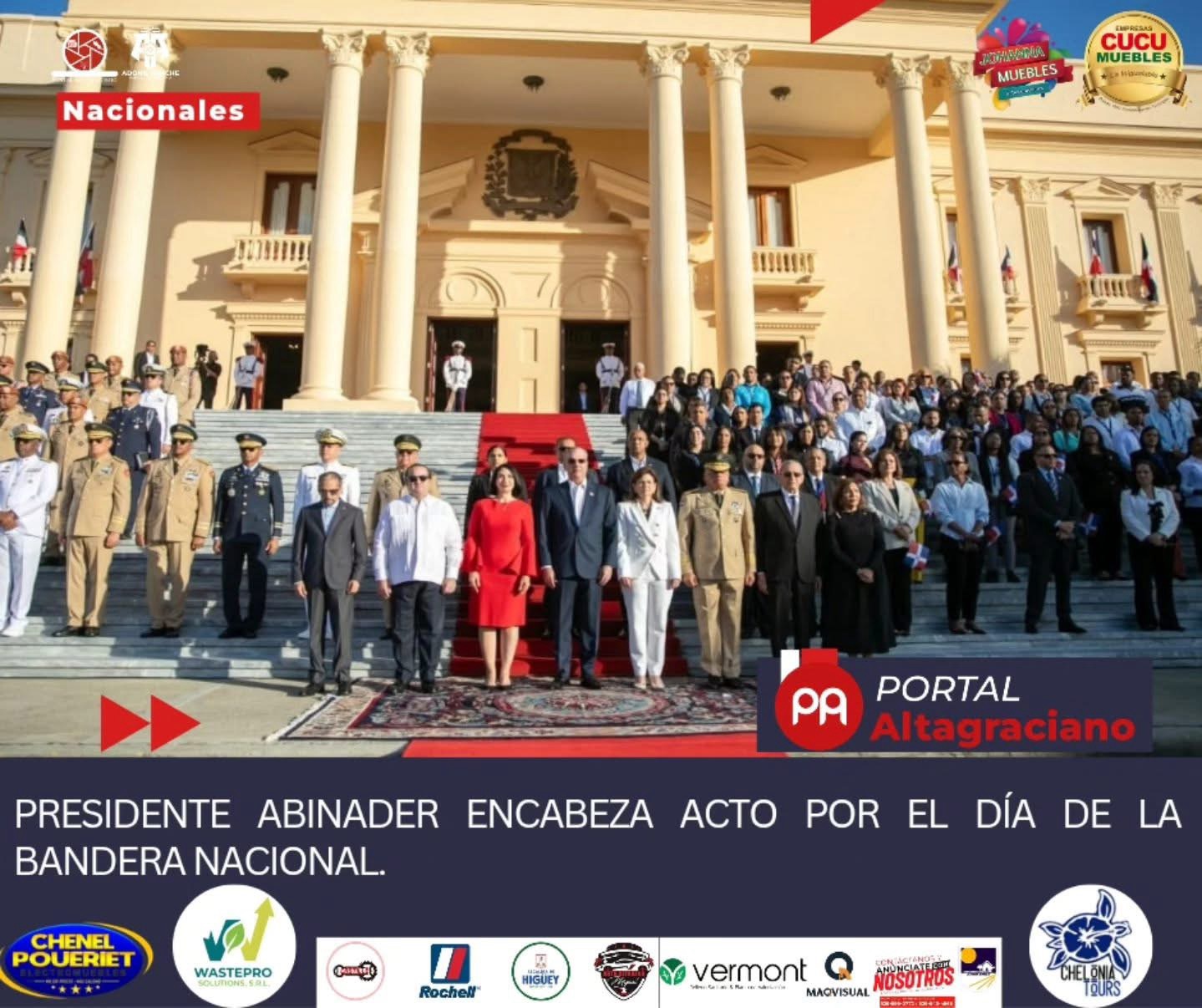 El presidente Luis Abinader encabezó este lunes el acto solemne en conmemoración del Día de la Bandera Nacional, celebrado en las escalinatas del Palacio Nacional.