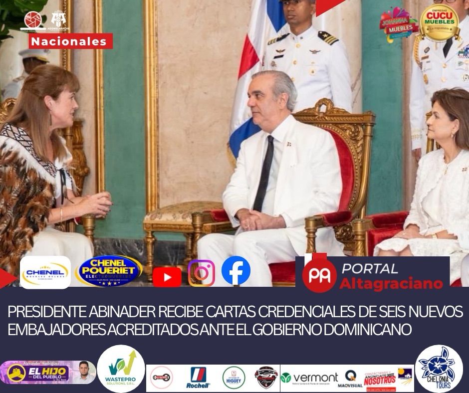 Santo Domingo.– El presidente Luis Abinader, junto con la vicepresidenta Raquel Peña y el ministro de Relaciones Exteriores, Roberto Álvarez, recibió este miércoles las cartas credenciales de seis nuevos embajadoresacreditados en la República Dominicana, quienes asumen sus funciones con una amplia trayectoria en el servicio exterior y en diversos ámbitos de la cooperación internacional.