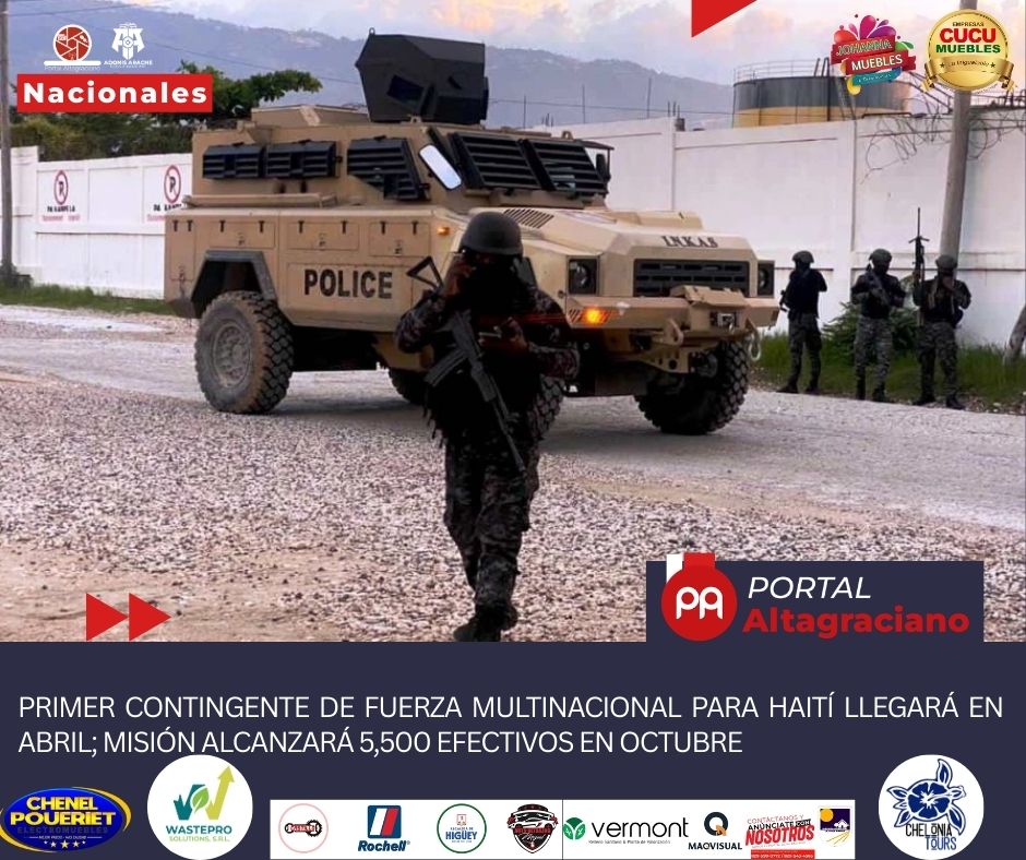 El canciller de la República Dominicana, Roberto Álvarez, informó que el primer contingente de la fuerza multinacional que apoyará la seguridad en Haití comenzará a llegar en abril, mientras que la misión alcanzará su capacidad total de aproximadamente 5,500 efectivos para octubre de este año.