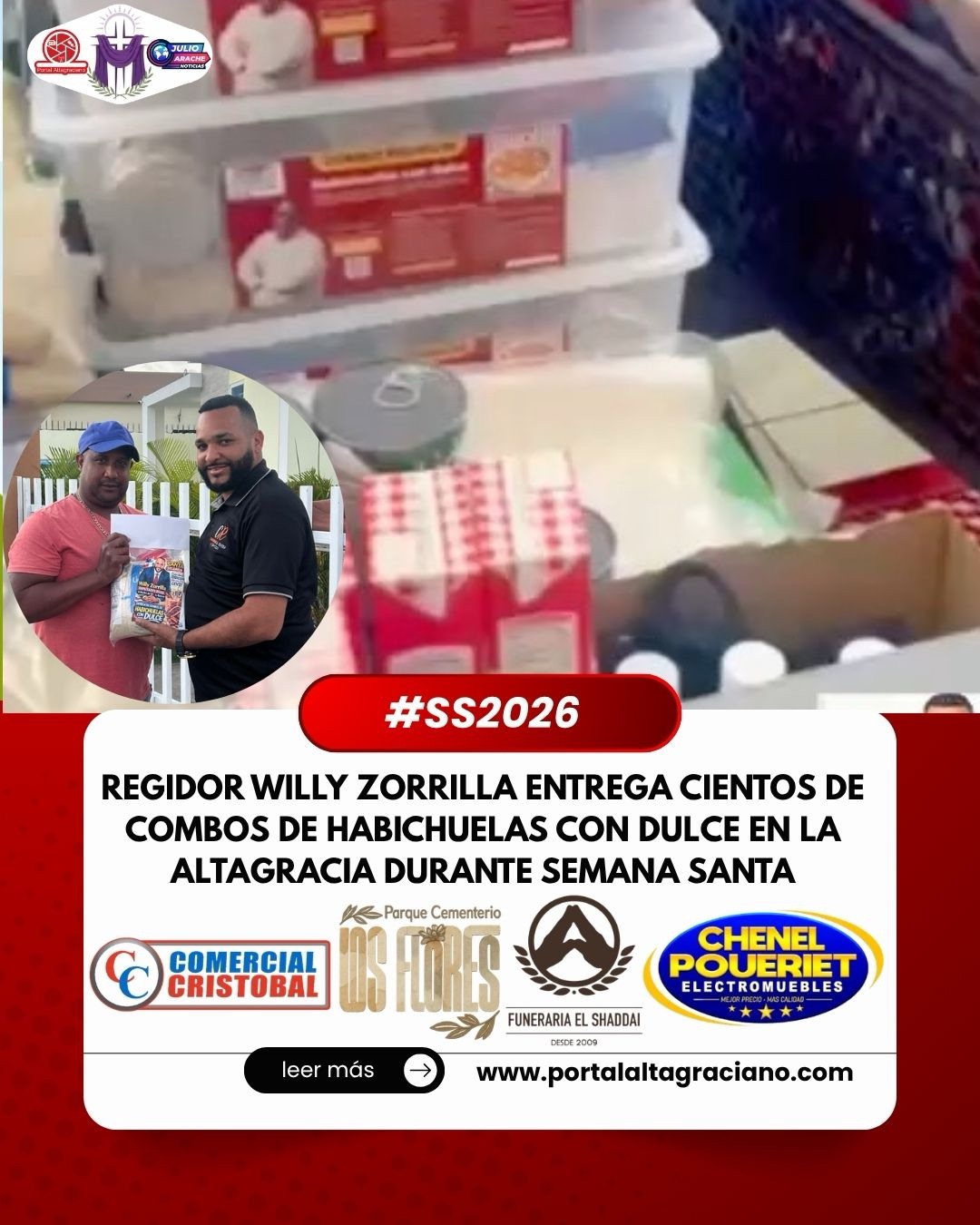 La Altagracia, R.D. – En el marco de la celebración de la Semana Santa 2026, el regidor Willy Zorrilla llevó a cabo una significativa jornada de solidaridad, realizando la entrega de cientos de combos de habichuelas con dulce a familias de distintos sectores de la provincia.