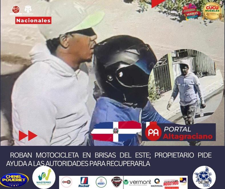 Santo Domingo Este.– A la redacción de Portal Altagraciano llegó la denuncia sobre el robo de una motocicleta ocurrido el pasado martes 24 de este mes, en el sector Brisas del Este, en Santo Domingo Este, alrededor de las 3:20 de la tarde.