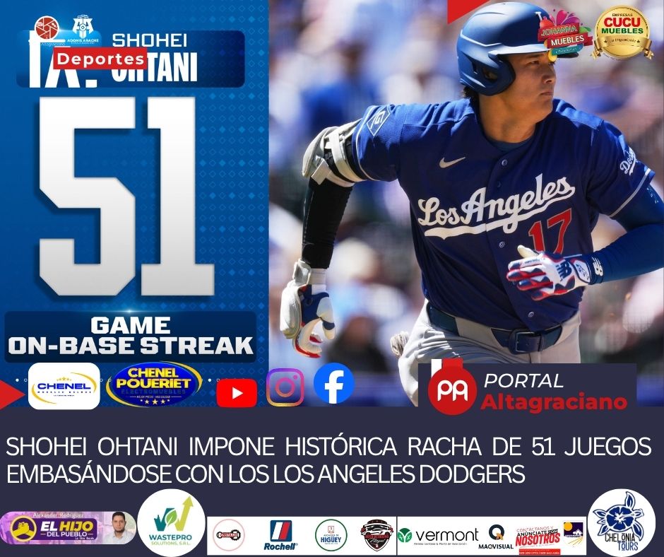 Estados Unidos.– El estelar japonés Shohei Ohtani continúa haciendo historia en las Grandes Ligas tras adueñarse en solitario del tercer lugar en la lista de rachas más largas embasándose en la historia de los Los Angeles Dodgers desde 1900.