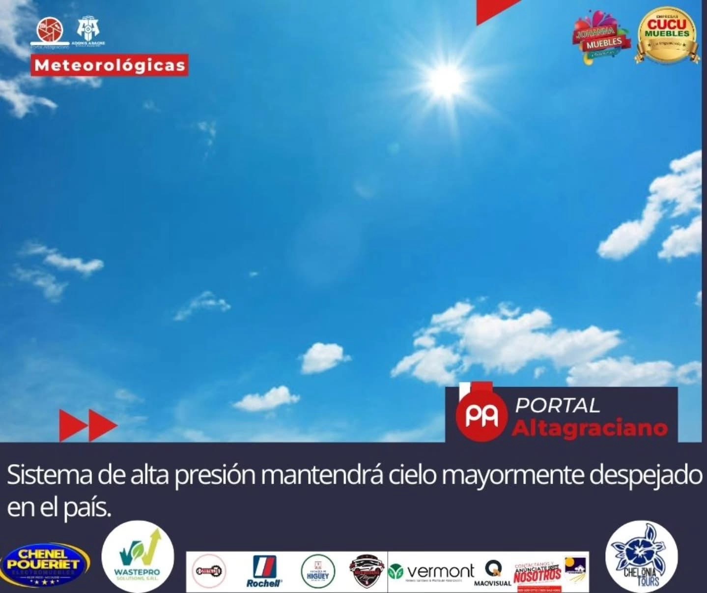 Estas condiciones atmosféricas favorecen un ambiente estable y con escasas probabilidades de lluvias importantes, manteniendo temperaturas acordes a la temporada y buen tiempo en gran parte del territorio nacional.