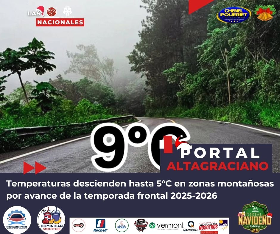 Las temperaturas registraron un marcado descenso durante la madrugada de este sábado en las zonas montañosas de la República Dominicana, como resultado del avance de la temporada frontal 2025-2026 y la entrada de una masa de aire muy frío proveniente del Atlántico.