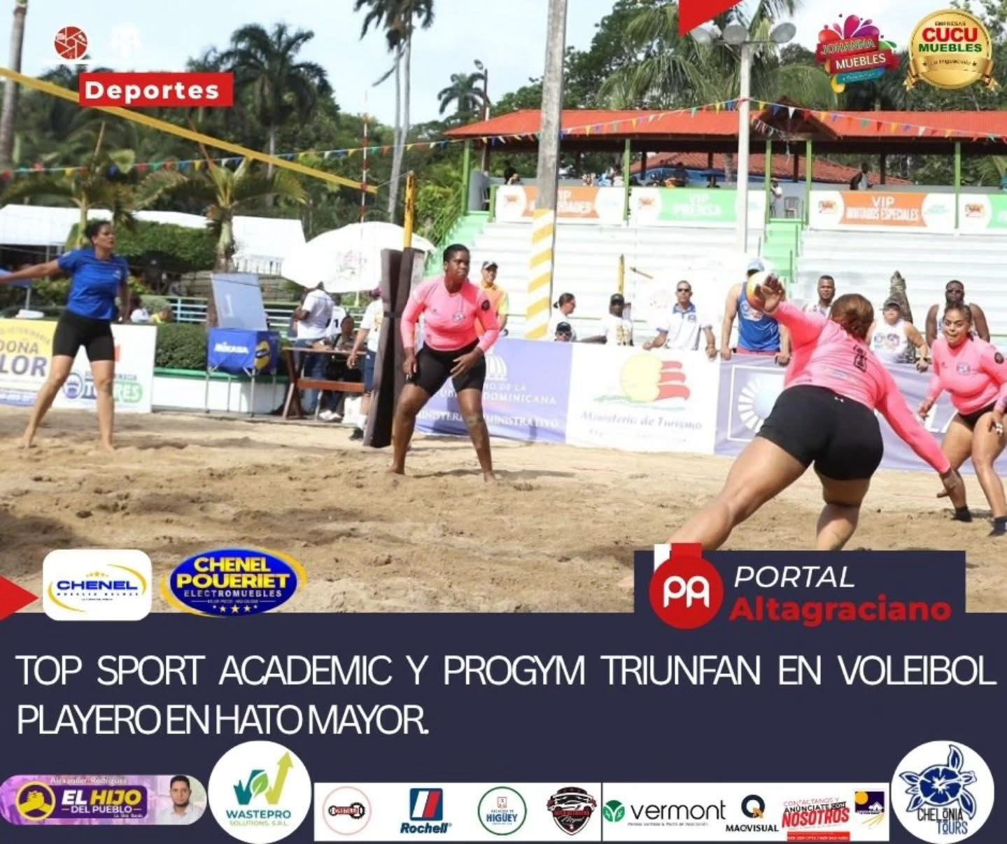 Los equipos Top Sport Academic y ProGym se proclamaron campeones en las categorías libre masculino y libre femenino, respectivamente, en el torneo de voleibol playero 3×3 celebrado dentro del Festival Deportivo Hato Mayor–Vicentillo, durante la 2026.