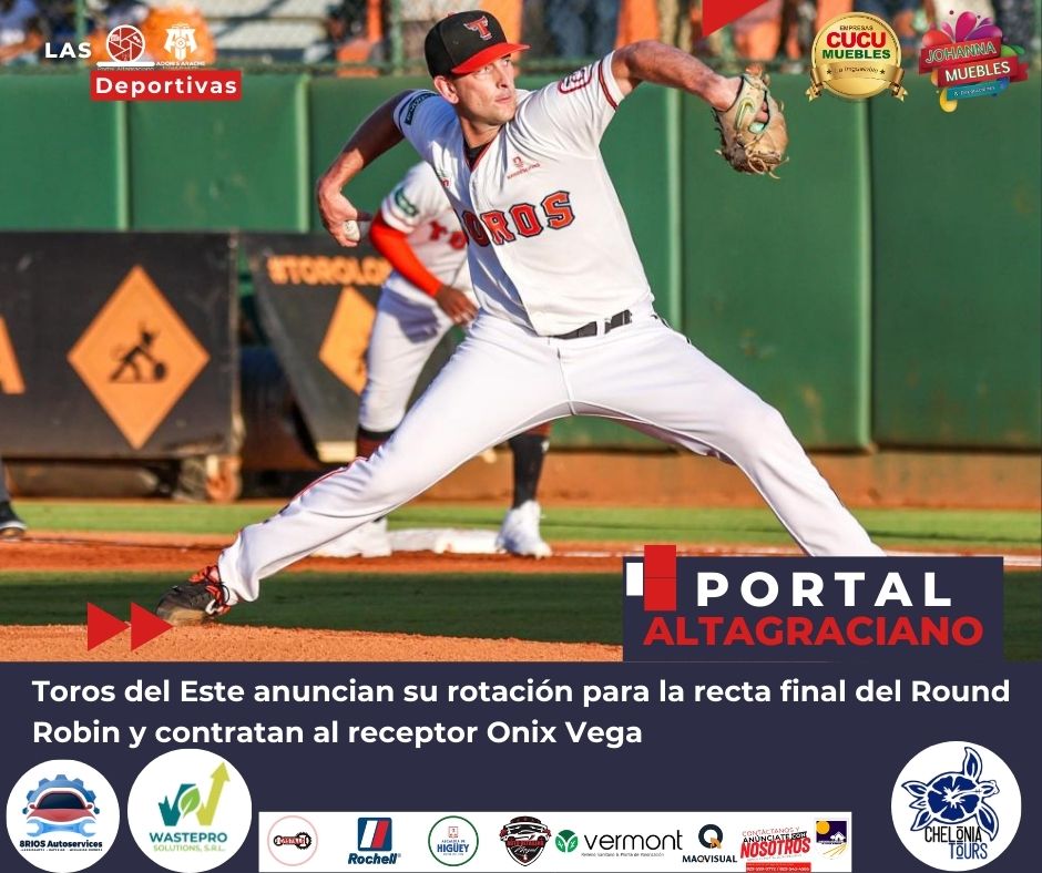 Los Toros del Este revelaron este lunes su rotación abridora para la última semana del Todos contra Todos (Round Robin), además de anunciar la contratación del receptor puertorriqueño Onix Vega, quien se integra al conjunto taurino para el tramo decisivo de la semifinal.
