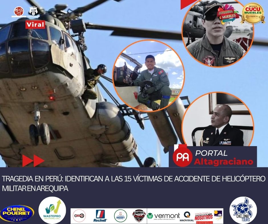 Las autoridades de Perú confirmaron la identificación de las 15 personas que fallecieron en el accidente del helicóptero Mi-17 perteneciente a la Fuerza Aérea del Perú (FAP), el cual fue hallado siniestrado este lunes en una zona cercana a la localidad de Chala Viejo, en la provincia de Caravelí, región Arequipa.