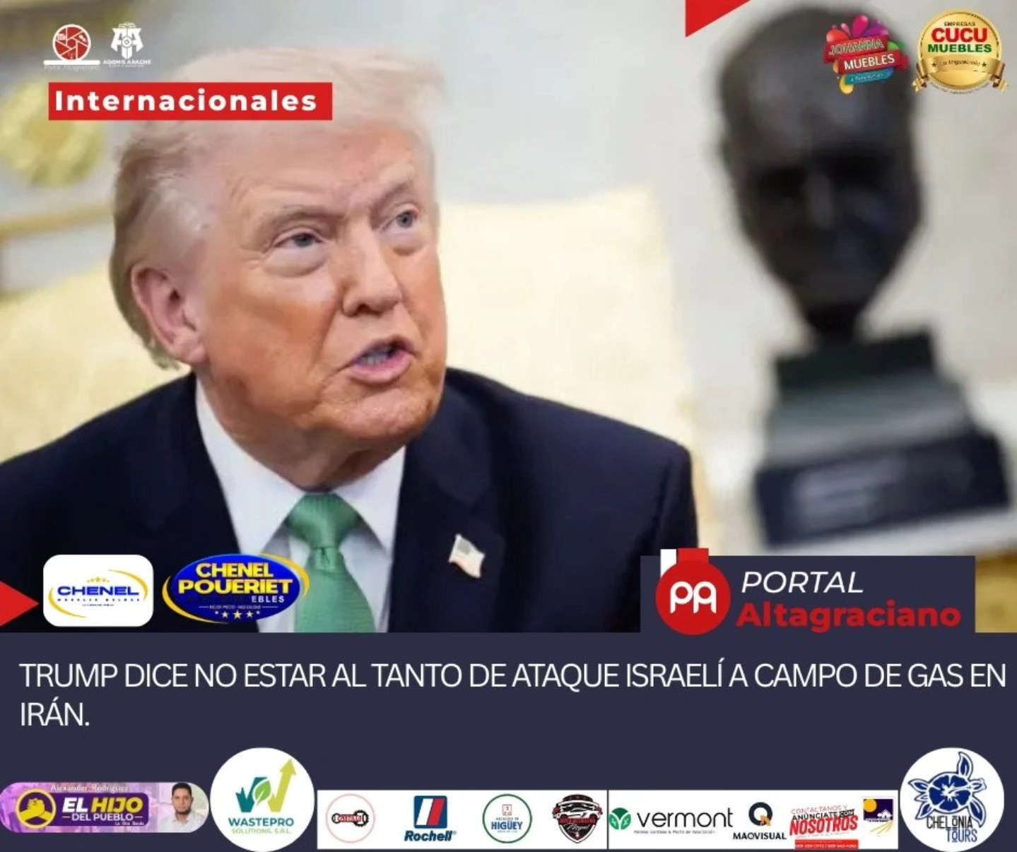 El presidente de los Estados Unidos, Donald Trump, afirmó que no tenía conocimiento previo del ataque ejecutado por Israel contra el campo de gas Pars Sur, ubicado en Irán.