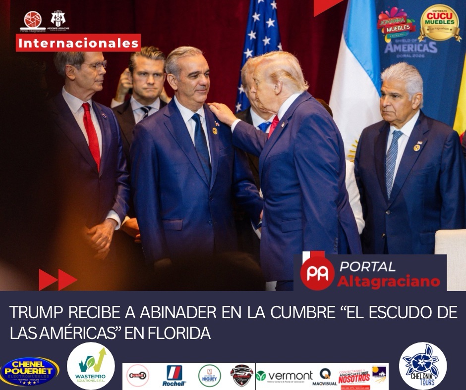 El presidente de los Estados Unidos, Donald J. Trump, recibió este sábado al presidente de la República Dominicana, Luis Abinader, en el marco de la Cumbre “El Escudo de las Américas”, que se celebra en Doral, Florida, Estados Unidos.