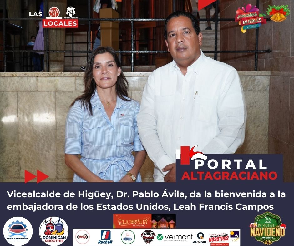 El vicealcalde del municipio de Higüey, Dr. Pablo Ávila, dio la bienvenida oficial a la embajadora de los Estados Unidos de América, Leah Francis Campos, quien realizó una visita a la Basílica Catedral Nuestra Señora de La Altagracia, acompañada de sus padres, como parte de su agenda institucional y espiritual en la provincia La Altagracia.