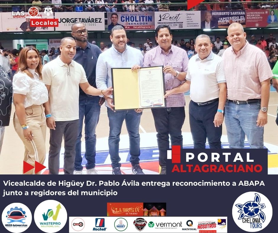El vicealcalde del municipio de Higüey, Dr. Pablo Ávila, junto a los regidores del Concejo Municipal, entregó una Resolución Municipal de la Sala Capitular mediante la cual se declara Patrimonio Cultural del municipio de Higüey a la Asociación de Baloncesto de la Provincia La Altagracia (ABAPA), con motivo de la conmemoración de sus 50 años de fundación.